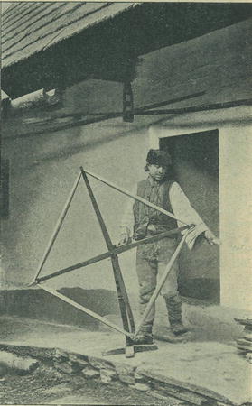 hlavu a v ní zuby. Okolky se na noc, když jsou oschlé a mají se druhého dne »bráti«, dávají do »kůpat«. Druhého dne se kupě rozhází, usuší a shrnou se do »kop«, nakládají se na vůz, vozí se domů, kdež se »prázdní« na půdu. Seno nakládá se »rohati-nami« (široké vidle se třemi dlouhými zubyPa dlouhým »nasadím«).
