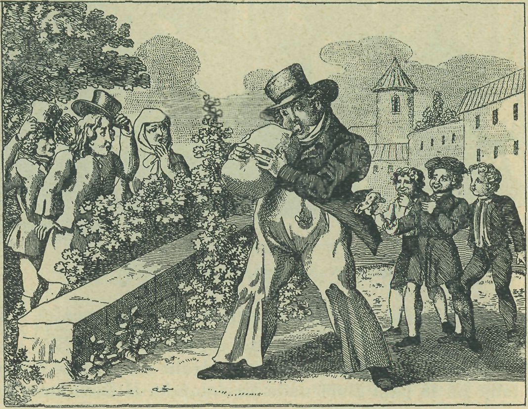 tam slavná pověst o Paganinovi se rozlehla, nedostatek ten stal se módou, a tím líbezné hudební umění zas pookřálo. Také tam skoro každé housle již jen o jediné struně se spatřují. Mnohé arciť mají dvě struny, ale ta druhá jest jen, aby kobylka tak lehce nepadla. Kdo jen trochu jde na čest, styděl by se tancovat při houslích, jenž mají všechny čtyry struny; houslist, který umí jen na čtyry hrát, není tam za žádného umělce uznáván. Jakýs hlubokomyselný Ko-courkovan spouští se ještě dál, a chee — co nevidět — dát se v koncertu slyšet na housle, jenž nižádné struny nemají. On také ehce potom chlapce chudých rodičů v tom vyučovat, a tak co památku po sobě Koeourkovanům velmi laciné muzikanty zanechat.