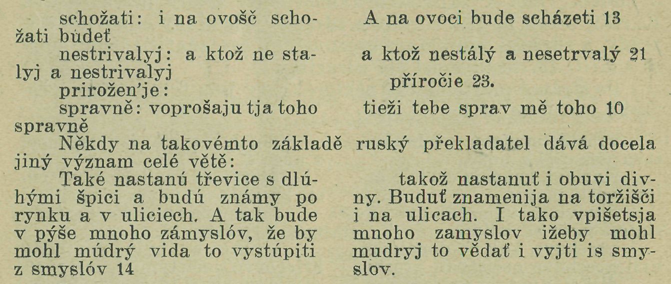 Na některých místech neporozumění vzniklo následkem nepravidelné punktace, Tak v kap. 13. (rkp. Z) čteme: