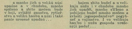 Překladatel z poslední věty učinil dvě, ale k »panstvu ry-tieřstvu« nezbylo mu prísudku a proto on musil ho dodat (»po-gybneť«), kdežto v poslední větě zůstal jen jeden podmět (»panie urozené«) a ten předělal v mase. (»gospoda uroženyji«).