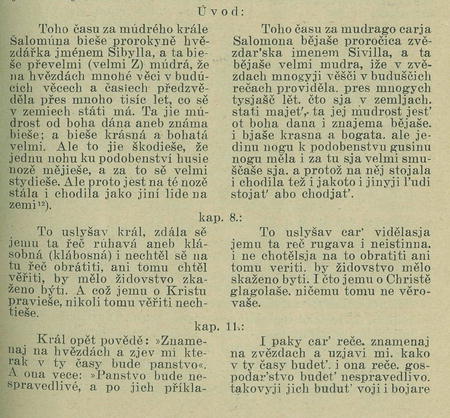 Zde překladatel neporozuměl asi slovu »ortelové« a přeložil je »sudji«, a »vyřknuti« pojal jako substantivum a předmět, dodal k němu přísudek »vydaduť« (také adj. »nespravedlivoje«) a zase utvořil novou větu. Vůbec pro celý tento odstavec měl snad hotovou již představu z druhých známých mu mravokárnych spisů, srovn. n-a př.: »knjazi i sudia i starci suditi naěnuť ne po pravdě, no po mzdě« ve »Slově o 12 snech Šachajši«11), kteréžto Slovo našemu »knižnikovi« jistě bylo známo, a proto mohl projeviti v překlade více samostatnosti.