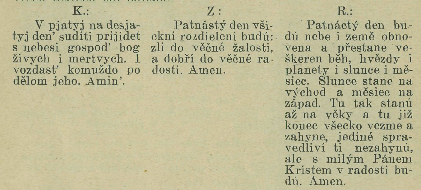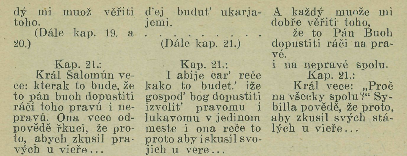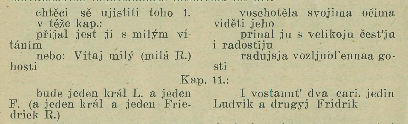 Zde máme volný překlad, ale druhá místa ukazují ná jiný text, trochu se lišící od Z a R. Na př.: