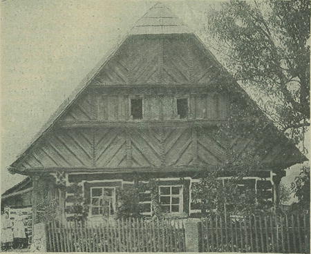 První škola ve Studenci. (Domek postaven roku 1770, fotografie z roku 1894.)