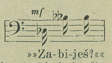Artikulované tóny f2—as1 a des-heses rovnými dobami spiaty byly s dějem, s věcí (koho, co chtěl zabíti), s případným citem: zlostí, úsměvem. V dlobě 0'5v a 0-85v bylo to vše ve vědomí na sobě závisle
