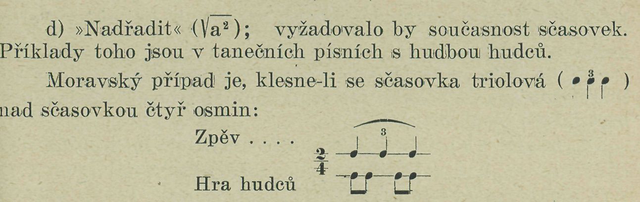 Nižší sčasovka je nadradenou, stálou; vyšší výminečnou! Jiný přiklad, když na natřesených tónech cymbała zdvihá se jiná sčasovka ve zpěvu.