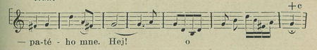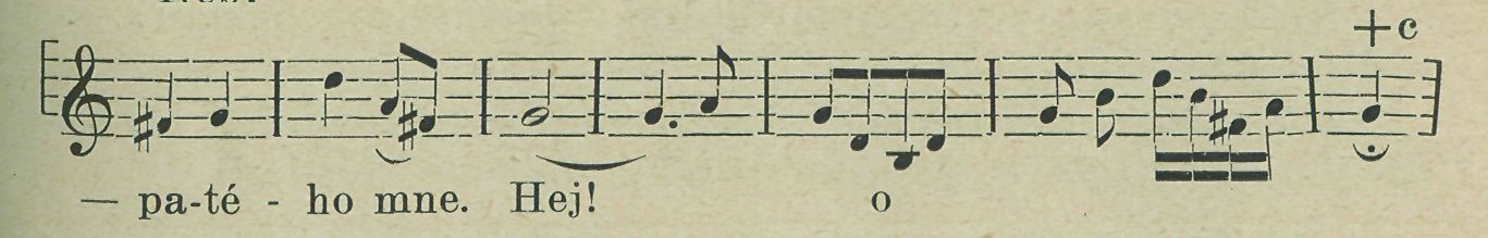 e) »Přidat« (+ c): zvláštní sčasovka zašvitoří v konci písně u hudců; ve zpěvu s klidem vyznívá — mimo architektonický celek písně.