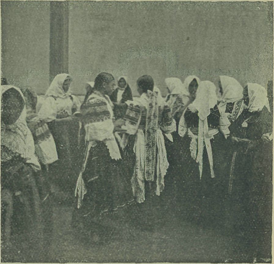 Slovenské ženy ani nestačí vyhověti všem objednávkám výšivek. Mladé dívky, sotvaže dovedou jehlu držet v ruce, již se pilně cvičí ve vyšívání. V zimě od Všech svatých do polovice dubna vyšívá všecko ženské pohlaví v dědině. Na jaře ovšem odkládají jehly a chytají se opět motyky. Je všaik též dosti žen, které se výhradně vyšíváním zaměstnávají. Práce těch bývá potom jemnější a proto i hledanější.