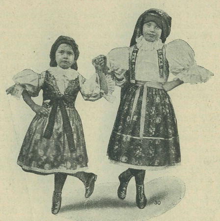 děti tyto potrhlé a hnusné posuny v tak zvaných národních krojích proti vůli rozumných rodičů — no, to již nestačí domluva a škoda preškoda výstrahy! Tu by kynuly pomoc a vyléčení snad toliko z pořádného a citelného výprasku. Snad by to pak »moderní« náladu taneční vyléčilo u »dětí moderních«. A vidí li dcerka svou maminku, jak se zmítá při »karlšteinu«, třese jako rosol z telecích nožiček, ať řekne: »Maminko, že se na stará kolena nestydíš pod rouškou zábavy s cizím mužským v přítomnosti tatínka .prováděti takové hloupé, komediantské ztřeště-nosti, ja.ko by tě posedl tanec sví. Víta nebo štípla tě vlaská ta-rantella! Mně, tvému dítěti, je to hanba hamboucí!«