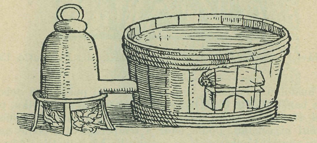 10. Vana s vodou, ohřívanou v kamínkách, 1547.