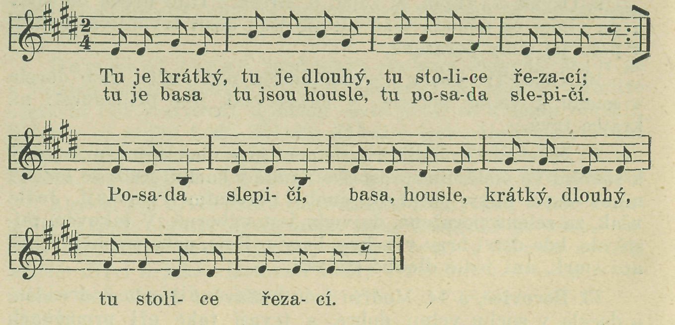 V Českém Lidu byla již otištěna řada příspěvků, jak se lidé a děti bavili malujíce čárky a rozmanité předměty, jež zpívavě jmenovali. Podávám příspěvek z okolí Jindřichova Hradce.