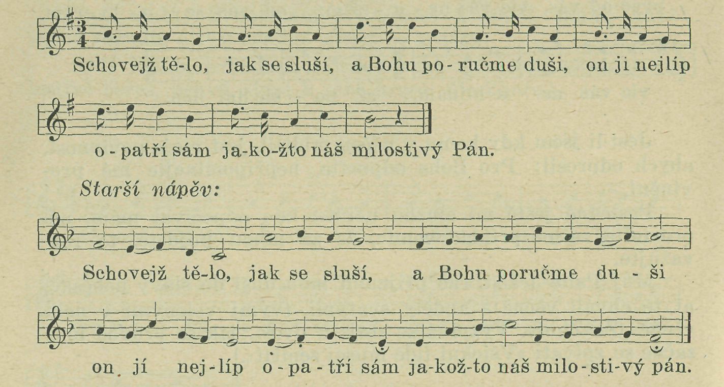 5. Nuž ty tehdy, křesťane, buď živ ctně a čiň dobře, jednou zajisté umříti musíš na tom světě, Nic, nic atd. (Píseň pohřební; zpívá se při východu z domu. Ze Zhoře.)