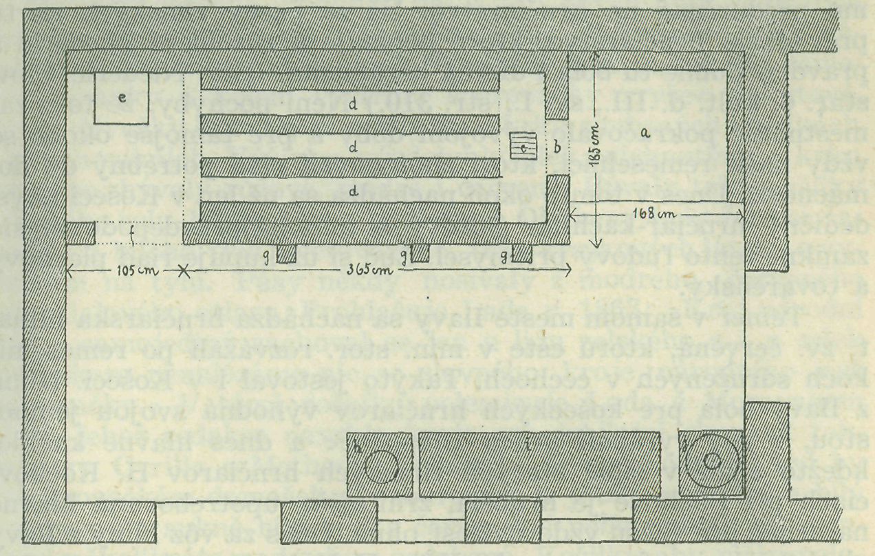 1. Plán hrnčiarskej dielne »vrštate« v Košeci. a = peklo,