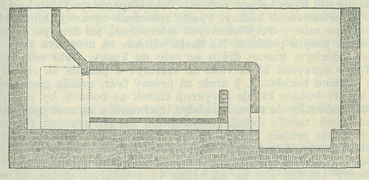 neunikala z pece a dým kanálkami mohol voľne vystupovať do otvoreného komina (viď obr. č. 2). Dubové a bukové drevo kladie z »pekla« cez čeluste a ohnište do kanálov stejnoměrné,