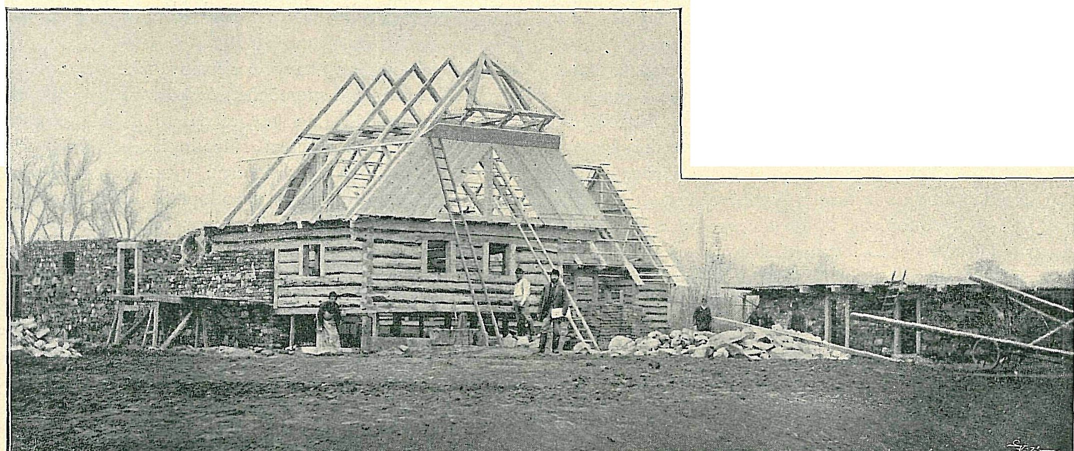 Stavba chalupy z jižních Čech v měsíci prosinci 1894.