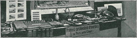 Stalo se tak skutečně s výsledkem dosti šťastným, ač netajíme si, že celý úkol v tomto směru nebyl a vzhledem k poměrně krátké době příprav ani nemohl býti vystižen. Jeť pole, jež zaměstnání lidu našeho po stránce národopisné otevírá, příliš rozsáhlé a tak vděčné, že by způsobem výstavnickým zasluhovalo a vyžadovalo obsáhlého, třeba i samostatného zpracování, jehož ne-li jinde, jistě v museu našem národopisném se mu dostane.