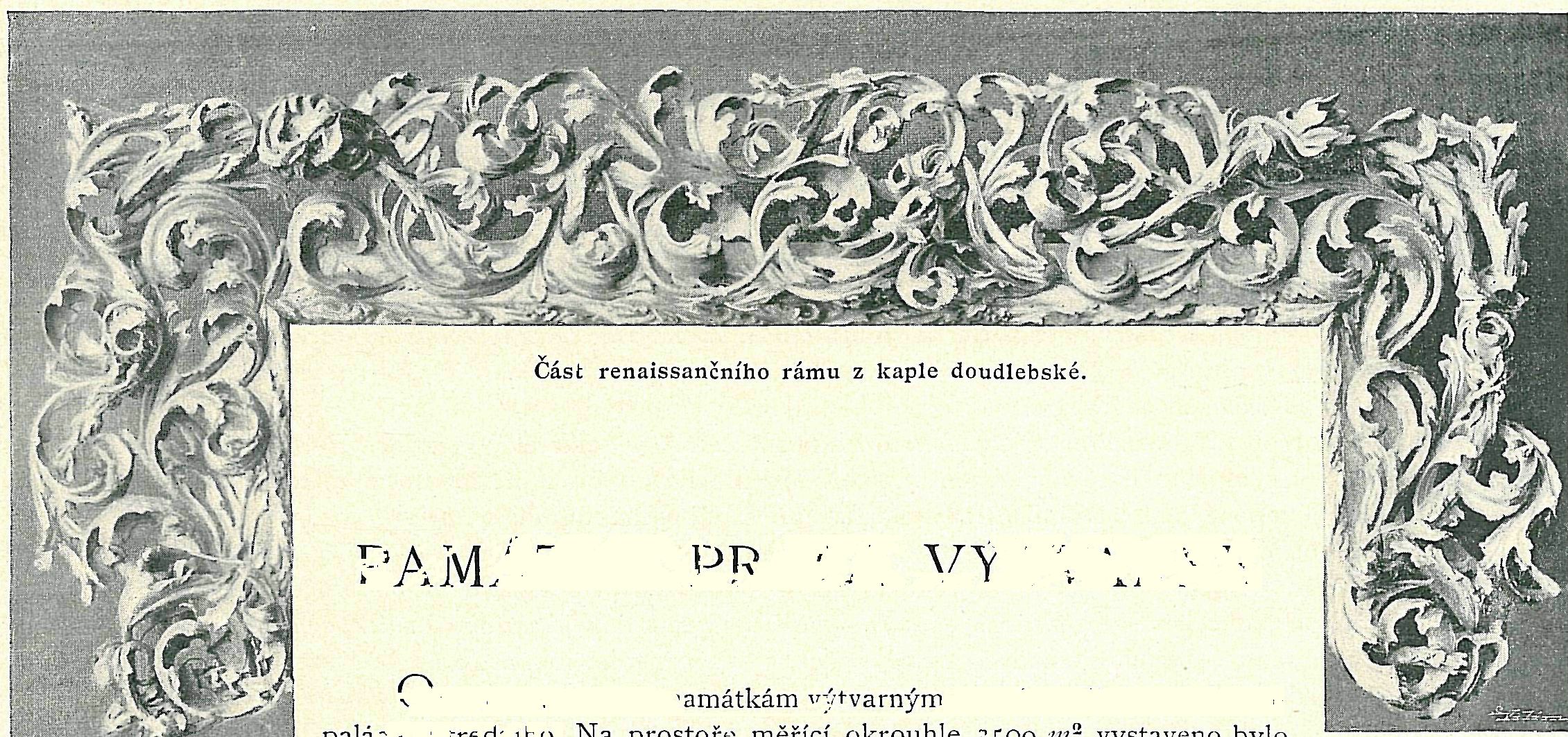 Nebylo náhodou, že výtvarníci a přátelé umění, kteří po úradách a se svolením výkonného výboru utvořili v září roku 1894 národopisný odbor výtvarný, pečovali o oddělení toto, a že za pomoci odboru církevního a několika samostatných kroužků pracovních (pro výšivky a součásti krojové, pro krajky, nábytek a řezby, mince a medaille, pro kované památky) postarali se, jinak než se původně zamýšlelo, o snesení a ve středu ústředního paláce o vystavení předmětů, o něž nebylo do doby ustavení odboru výtvarného postaráno tou měrou, jaká se jim z různých příčin pro výstavu národopisnou důležitou býti viděla, a že tak na vynikajícím místě výstavy octly se památky výtvarné, pokud v nevalně příznivých poměrech pro výstavu národopisnou snésti je se podařilo z majetku soukromého, církevního, z výstavek národopisných a sbírek veřejných, bez ohledu, zda ony utvořeny byly vycvičenými řemeslníky, umělci, aneb nadanými a jemně cítícími diletanty, bez ohledu, zda sloužily bytu selskému a vesnickému, domu měšťanskému, místnostem veřejným obce aneb klášterům a chrámu Páně.