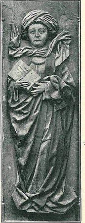 Při rostoucí zálibě ozdobovati veřejné budovy kamennickou prací nebylo více možno ani fotografiemi podati přibližný obraz bohatosti a dokonalosti, které se plastika česká dodělala za dlouhého trvání slohu gotického. Místa bylo dopřáno proto jen velmi malému výběru nejlepších památek, známým kazatelnám, sanktuářům, křtitelnicím, portálům atd. Nedostatek řádného znázornění kamenné plastiky nahrazen byl do jisté míry snesením četných dřevořezeb z pokročilého XV. a ze začátku XVI. století. Zde náleží Národopisné výstavě českoslovanské i zásluha, že poukázala na různé, doposud neznámé památky, pro domácí dějiny umění ne bezvýznamné. Byly to ovšem pouze fragmenty skládacích oltářů, které se v pozdní gotice tak všeobecné oblibě těšily, že jich v Čechách tisíce postaveno bylo; jelikož katolická reformace v nich viděla pomníky kacířského ducha, bořila a ničila je v přílišné horlivosti tak dlouho, až z nich nezbylo než několik v zapomenutých filiálních kostelíčkách a soukromých kaplích. Zcela nahodile zůstaly někdy i ve farních kostelích na svém původním místě — v Praze jediný renaissanční v chrámě týnském. Na naši výstavu zaslány byly obě známé archy z Vlašské kaple v Kutné Hoře se sochami sv. Simona a Judy a s reliefem smrti Panny Marie, pak krásná křídla oltářní s postavami sv. Lidmily a sv. Vojtěcha z téže kaple, i relief sv. Barbory z kutnohorského velechrámu této světice. Jiné skládací oltáře, zapůjčené z Lična u Častolovic — relief Naroz. Páně uprostřed, sochy svatých po stranách — a z Klapé u Libochovic se sochami Madonny, sv. Barbory a Kateřiny, nerovnaly se kutnohorským ani hodnotou uměleckou ani zachovaností.