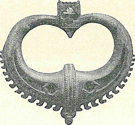 tepanou prací stříbrnou ozdobený, a 24 lžic z jalovcového dřeva, ku podivu pěkným stříbrným kováním opatřených. Obé, pás i lžíce, ozdobeny jsou nad to mnohými nápisy rytými i smaltovanými.