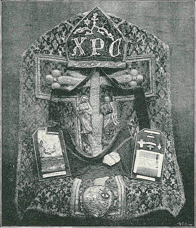 *) Ozdobný hřeben náležel dříve k náčiní pontifikálnímu. Při oblékání pontifikálií česávali jím přisluhovači biskupa, při čemž biskup říkal předepsanou modlitbu.