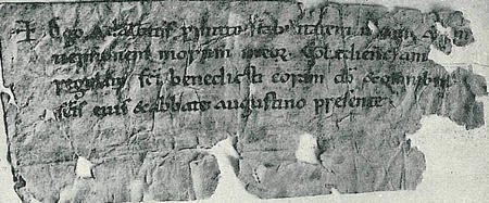 krásnou románskou polovypuklinou. Řez-ba tato představuje po jedné straně Beránka Božího v kruhu, jejž drží dva andělé;