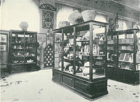 Pokud místnosti výstavní (672 m2) dostačovaly, učiněn pouze výběr ze sbírek musejních úhrnem 3638 před-mětův, které pořadně dle odborův, jež v musejních sbírkách se pěstují, také zde vystaveny byly, a sice: pravěk, archaeologie a výrobky domácího průmyslu, pražské pořádky, církevní památky a památky historické se všemi, do historie příslušnými odbory, a konečně pohledy na město, místní tisk, znaky atd. atd.