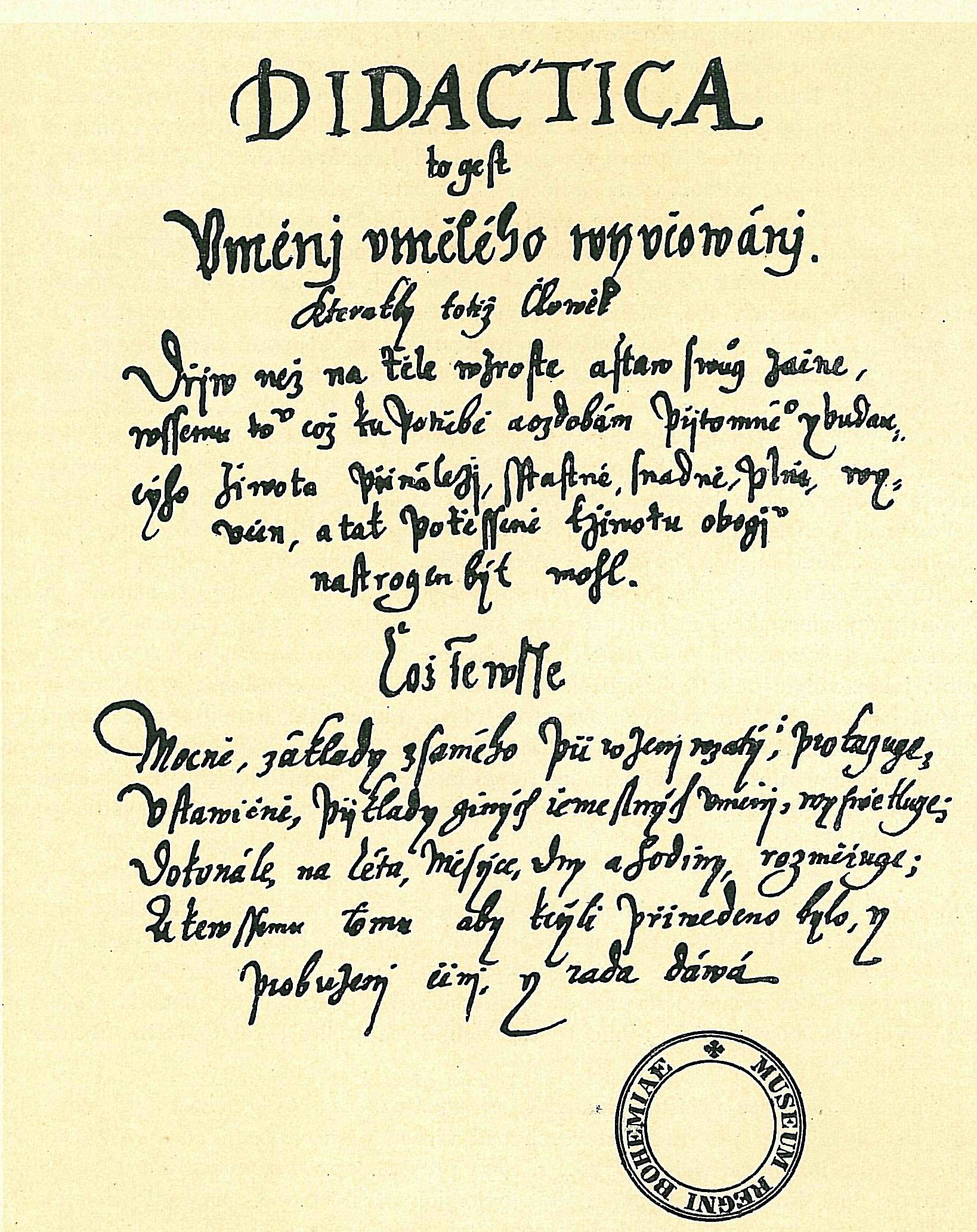 Titulní list České Didaktiky; snímek rukopisu J. A. Komenského.