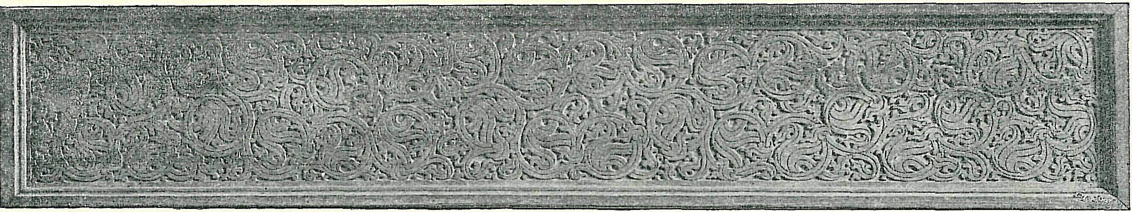 Opěradlo lavice gothické z výstavy musea města Prahy.