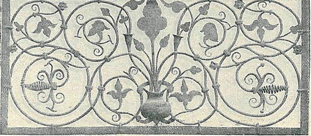Ve velkém medaillonu byla zvětšena památná zemská pečeť Svatováclavská (nyní u desk zemských uschovaná, jíž bylo užíváno až do zániku samostatných českých zemských úřadů), kde vyobrazen sv. Václav jak »volá k spra-vedlnosti« (citat ad judicium). Nápis na pečeti »S. justitiae totius terrae scti Wenceslai ducis Boem«. (Pečeť celé říše sv. Václava vévody českého). Sv. Václav zůstal tedy věrným patronem českého práva, českého soudnictví až do konce české samostatnosti.