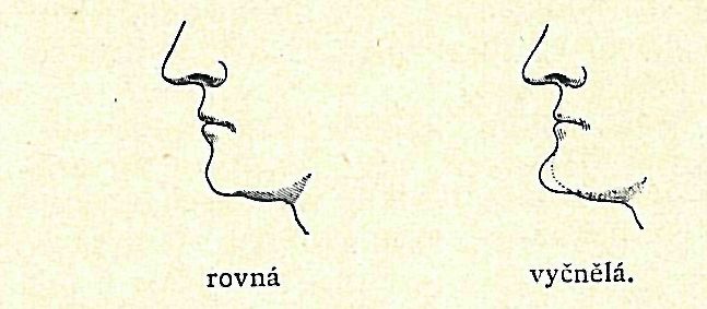 c) Kolik lidí má bradu rovnou a kolik bradu do předu vynikající, dle nákresu: