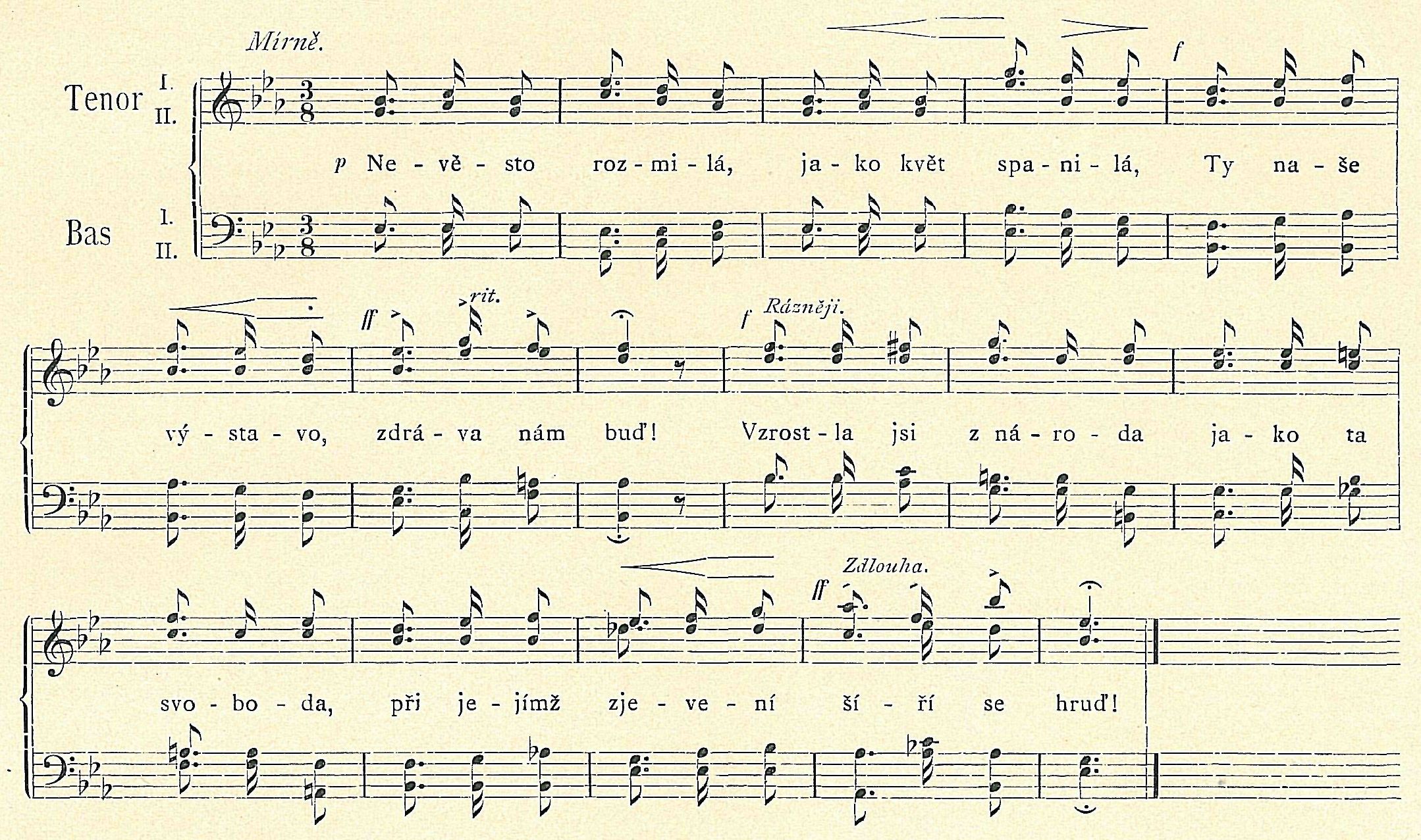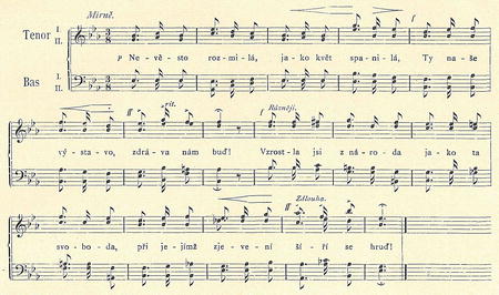 Slova od Jaroslava Kvapila. Nápěv složil Karel Kovařovic.