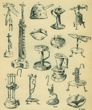 Obr. 10. Světidla lidu českého na přástkách. Kreslil Ad. Kašpar.