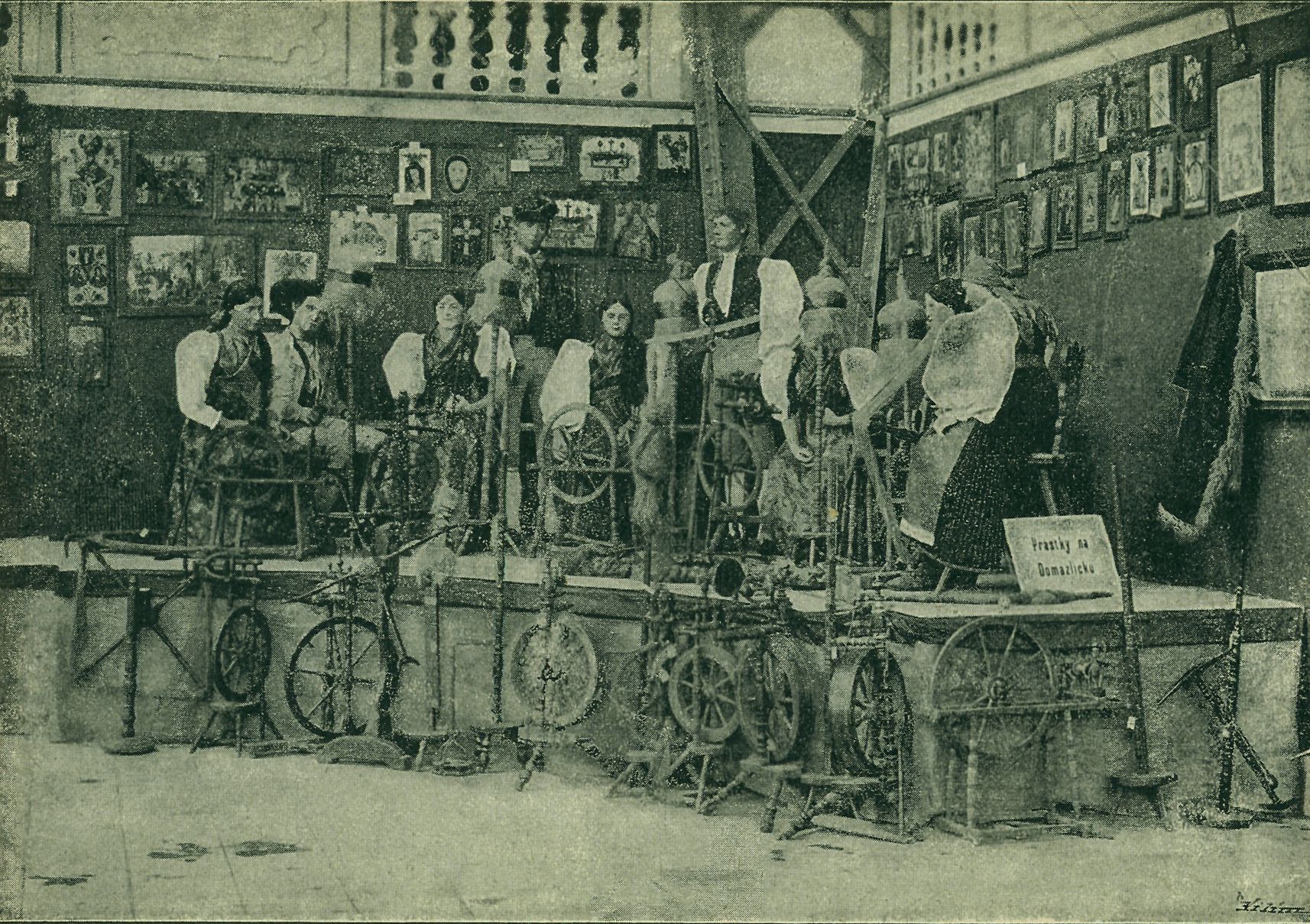 Obr. 12. Přástky na Domažlicku. Skupinu ve zvykoslovném oddělení Národopisné Výstavy 1895.