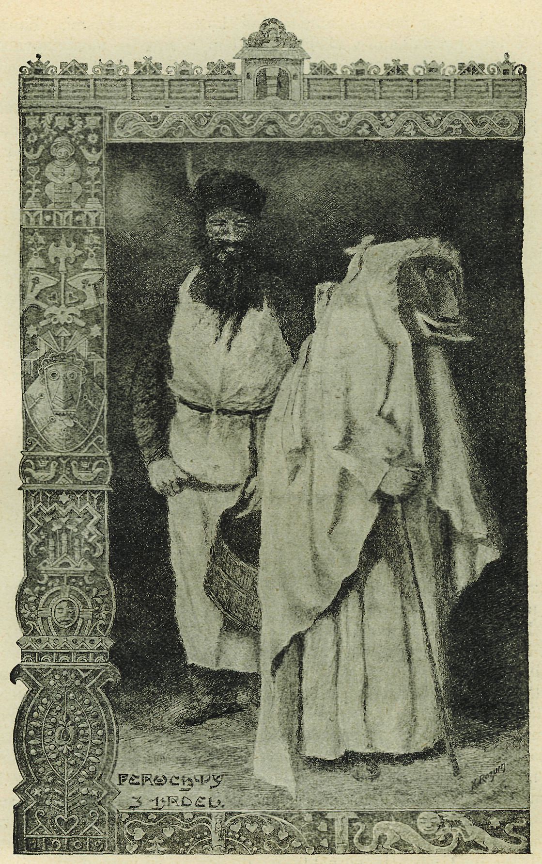 je vezmou s sebon. Kára před kostelem nemálo lekala zbožné občany jdoucí na jitřní. První perychla ohlašovala zvonečkem příchod: všechny měly v rukou metly, jimiž po stolech šlehaly. Obyčejně se strojil muž