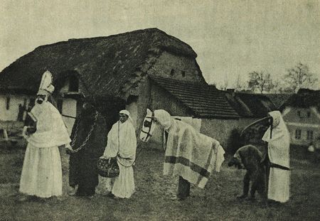 Obr. 47. Kobyla a koza v průvodu Mikulášském v Kunicích. Fotogr. Fr. Uldřich.