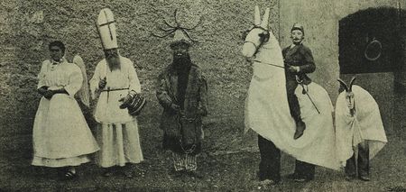 Obr. 48. Kobyla a koza v průvodu Mikulášském ve Vel. Číčovicích. Fotogr. Gustav Šebor.