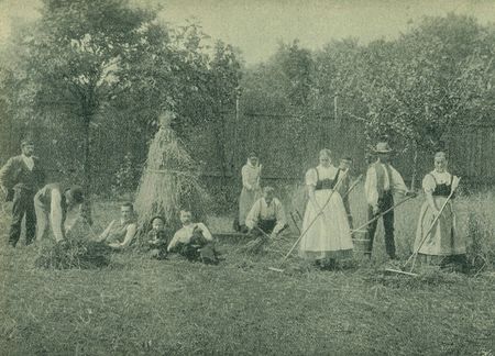 Obr. 16. Žně a přípravy k obžinkám na Národopisné Výstavě 1895.