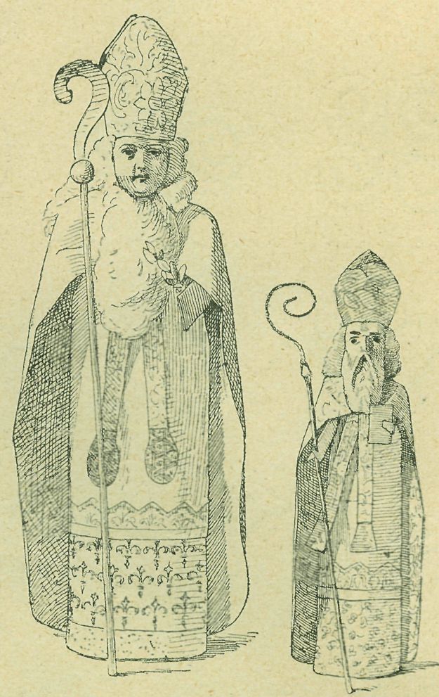 Obr. 37. Figurky sv. Mikulášů z trhu v Klatovech. Kresli1 prof. Ferd. Vaněk.
