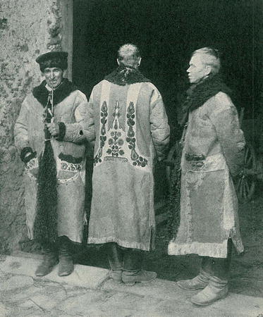 Mezi poslední vymírající zbytky lidového kroje Českého Horáčka, jež dovedly nejdéle odolati v pravdě „hlodajícímu zubu času", patří dlouhý horácký kožich. (Jeho soudruh z dob dávných — kožich krátký — vymizel již docela.) — Jen jako poslední jiskra uhasínajícího ohně mihne se ještě tu a. tam ojediněle barevné vyšívání jeho zad. Naposledy spatřil jsem dlouhý vyšívaný kožich o loňském zimním výročním trhu v Humpolci. Starý Kameník (jméno po došku) ze Lhotky jej nosí dosud. Ale jistě již sám! Jinak již ho v městě nespatříme. Na venkově ještě, když jede náš horák „do lesa",