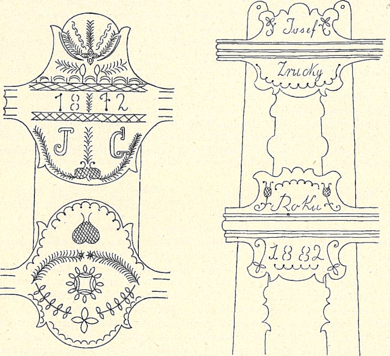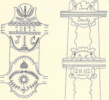 Novější nářadí hospodářské ovšem jeví v ozdobě ornamentální úplný úpadek. Jan Tykač