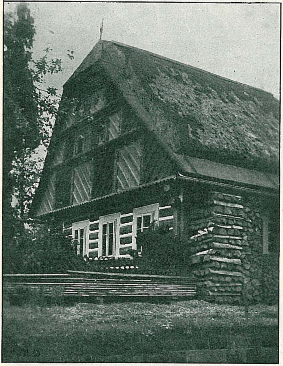 Je tedy lomenice vlastně lidovým přepsáním renesančního štítu ve smyslu dekorativně ornamentálním a podobným přepisem jsou všechny její detaily. Tak na příklad její obloučkový motiv, doprovázený lištami, upomínáa na obloučkový vlys štítů staveb šestnáctého století (příklady ze Skuřiny, obr. 15, Malého Rohozce, obr. 16 a