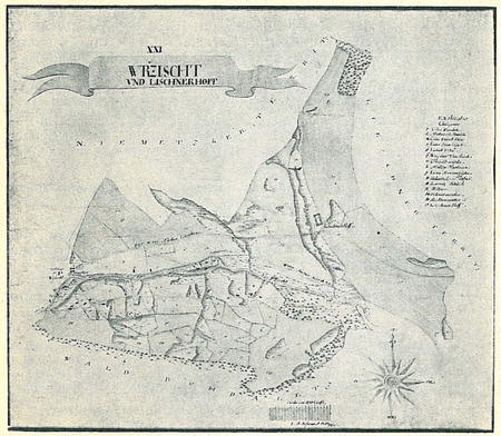 4) První zápisy v „Gruntovních registrach" rychty Německé o nich zní: „Grunt Martina Steide. V létu 1626 koupil nahoře psaný Martin grunt svůj ze vším příslušenstvím, což k němu od starodávna náleží, za sumu hotových 9 zl. mor., a tak tu na tom grumitě žádný nic nemá; jest zaplacen.1' — „Grunt Vlka Precle. V létu 1632 koupil nahoře psaný Velk grunt od Václava Chmelíčky.ze vším příslušenstvím, jak ji on v držení a užívání měl, za hotových 14 zl. mor.; však byla hrubě spustla a tak na tonn gruntě žádný nic nemá; jest zaplacena. Však kdy by kolvěk takový grunt z vůli vrchnosti prodati chtěl, může ho sobě, jak bude moci, zvejšiti" (t. j. dráže prodati).