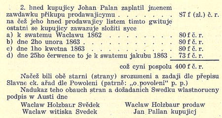 Za souseda do obce přijímali jen, kdo déh se v obci zdržoval a choval se bez úhony. Nový soused platíval také hned poplatek do obecní pokladnice za zápis svého jména, kterým bývalo zpravidla jméno po doškách. V pokladním denníku obce V. Jeníkova vykazuje se sumou 10—25 zl. „za přigmutj". Výše její stanovila se dle kabátu.