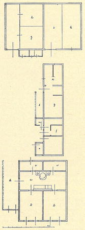 Obr. 12. Plán téhož hospodářství s dvojdomém ve Štôle: a) „pitvor, b) „izby", c) „komory", d) „dufart", e) chlívek, f) ovčin, g) h) chlévy a maštale, i) mlat, k) přístodůlek, 1) dřevník.