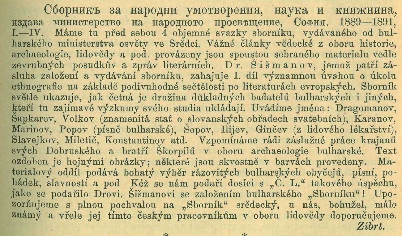 Referáty o ruských a cizích časopisech, věnovaných lidovědě, podáme v budoucím čísle. V tomto čísle vykázáno za to, jak laskavý čtoucí vidí, více místa referátům o časopisech, věnovaných studiu anthropologicko-archaeologickému.