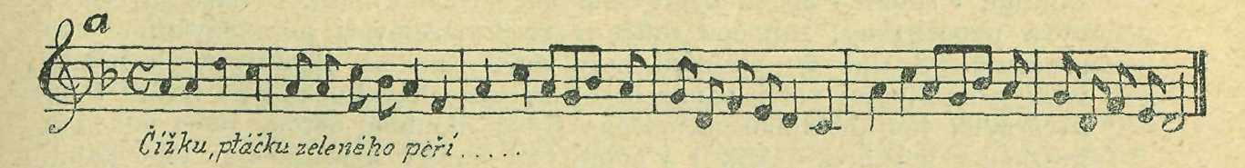 Nápěvy samy stůjtež zde v pořadí abecedním, dle začátků slovních — kteréžto začátky, bohužel, mimo vzácné případy docela osamělé jsou jedinými zbytky příslušných lidových textů původních. Co podrobnějších dat a dokladů literárních a j. v. se týká odkazuji jednou pro vždy k Jirečkovým článkům v „Čas. Č. M.", k téhož „Hymnologii" (1878), po případě i k jeho „Rukověti".