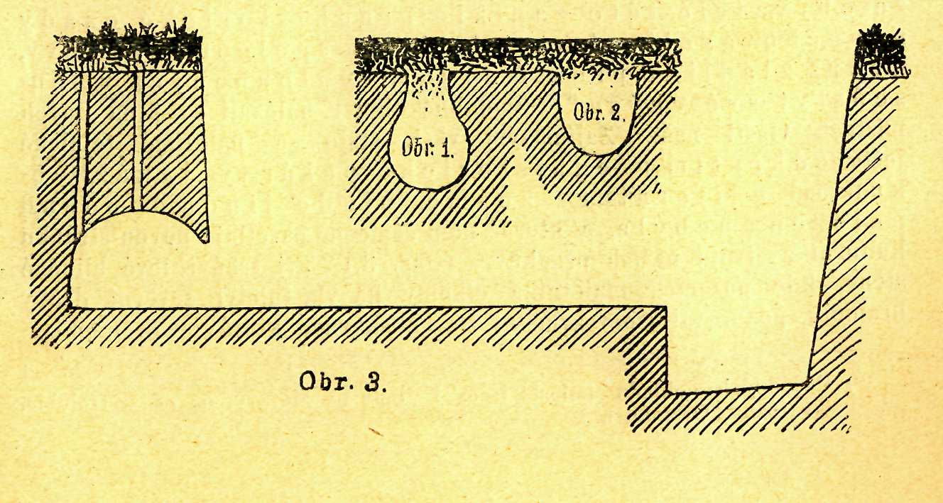 českomoravská východně hlavního města družné Moravy posledními svými výběžky znenáhla přechází v úrodné kraje jihomoravské a žírnou Hanu. Při úpatí takovém, asi 10 km. od Brna směrem jihovýchodním, na staré cestě z Moravy do Uher vedoucí, rozložena jest malá dědinka Telnice. Protékána jsouc nepatrným potůčkem „Zlatým", leží vesnice po levém jeho břehu na úrodné rovince, ohraničené nepatrnými vyvýšeninami, složenými z hlinitých, písčitých nebo štěrkovitých vrstev diluviálních nánosův a náplav v sousedství blízkém osady Sokolnic, od níž jest odříznuta násypem trati severní dráhy císaře Ferdinanda. Zkoumaje krajinu zdejší po stránce archaeologické odkryl jsem zde dne 3. září 1883 četné kulturní vrstvy, z nichž tu onde kosť neb střepina z nádob i na povrchu se objevovala. Usazeniny proříznuty jsou třemi hliníky, z nichž dva jsou pro naše badání zvláště důležity. Jedna cihelna nalézá se těsně při východní straně Telnice, a obsahuje mocná ložiska popelu a spálené hlíny, které často hnízdovitě do země zasahujíce, obsahují střepiny z nádob vesměs ve volné ruce vyráběných, tuhou leskle vyleštěných, které však od lidí neznalých stranou bývají pohozeny; druhá cihelna, Králova, pošinuta jest poněkud od obce na sever a obsahovala nálezy sporé sice, ale tak zajímavé, že se staly předmětem mého téměř desetiletého pozorování. Již při stavění náspu železniční trati odkryto mnoho předmětů starožitných, jichž většina jest do materiálu zasypána. Teprve po roce 1883 všímali sobě dělníci obsahu popelových jam, jichž bylo odkryto