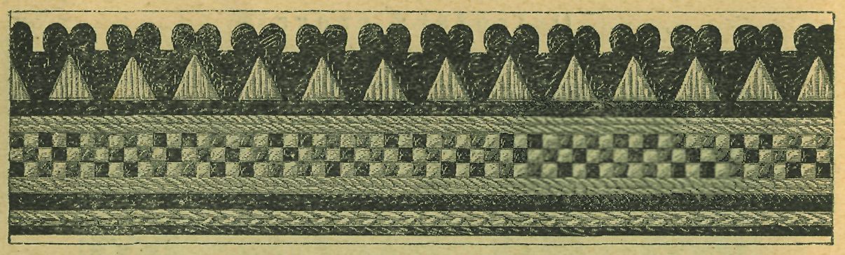 Čís. 20. Na tmavomodré půdě bílou (přízí), černou (vlnou), žlutou a zelenou (hedvábím).