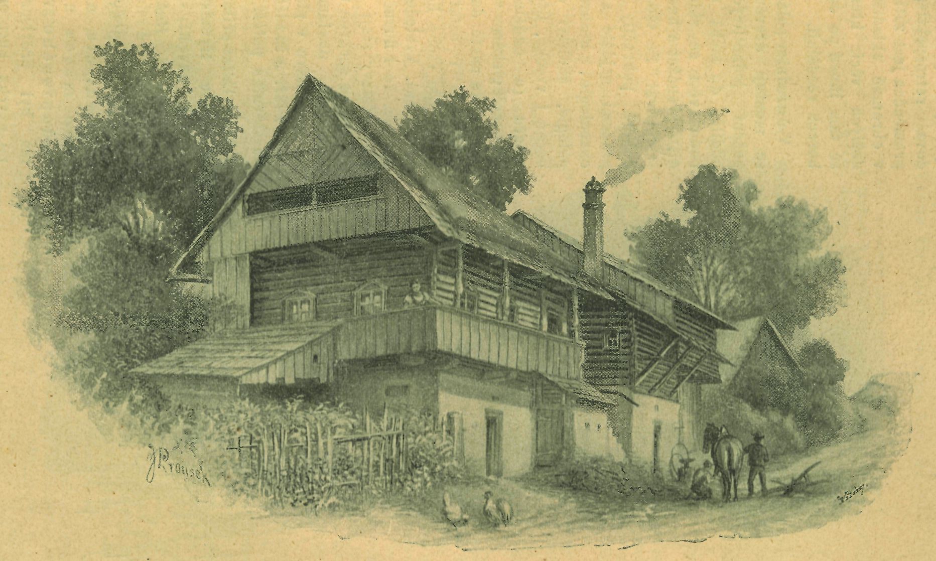 Kovárna v Bílá na Českodubskn. Dle skutečnosti nakreslil J. Proušek.