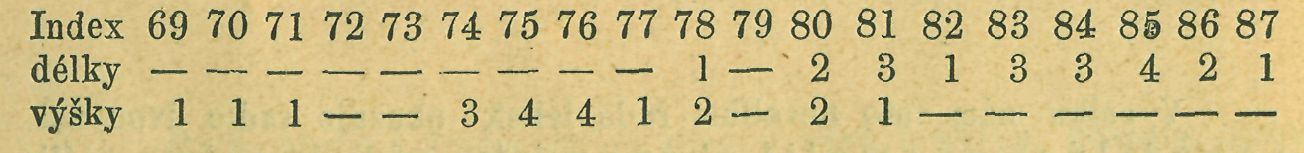 Index délkový 5 lebek mužských je průměrem 84*53, dvotí ženských 86-83, dvou neurčitých 84"08.