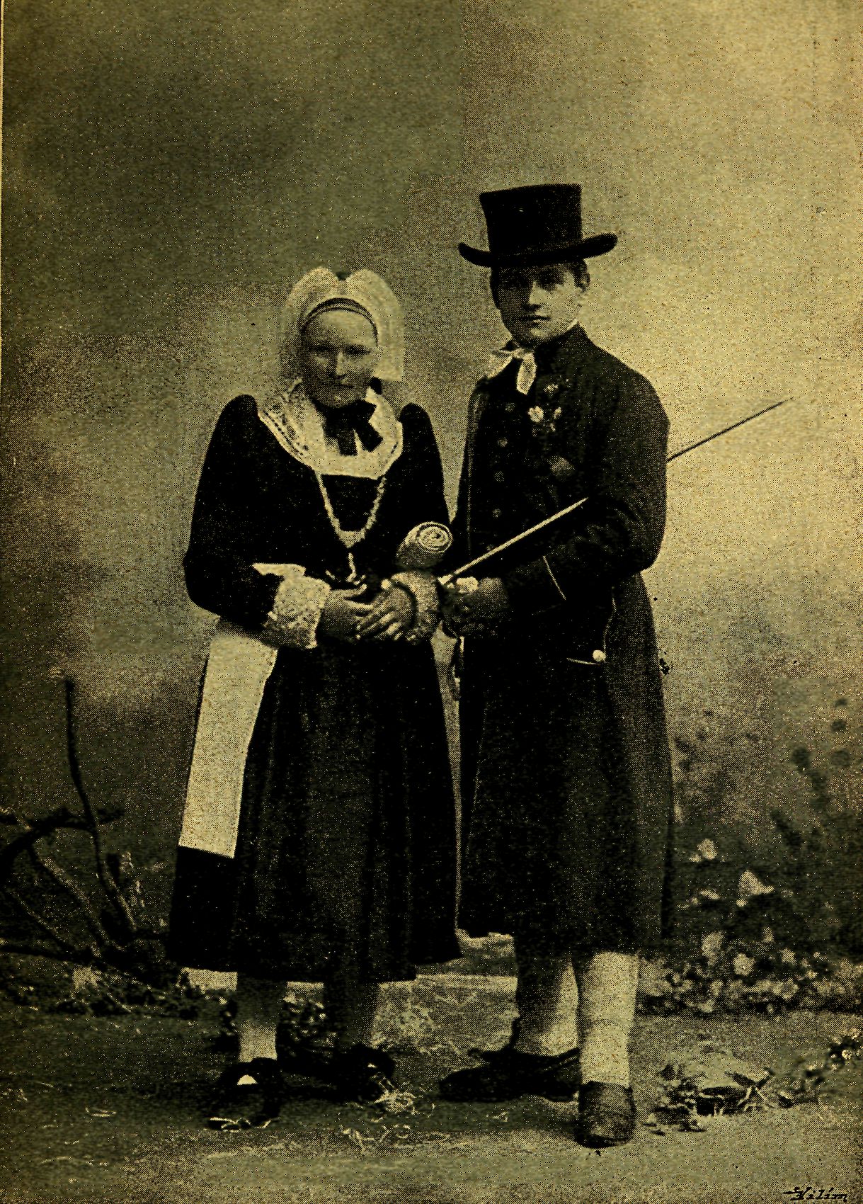 Ve skupině přástek [(„přaza")] byly zase ukázky krojů z různých končin: pantáta v dlouhém režném kabátě a v pletených velikých 'sla-